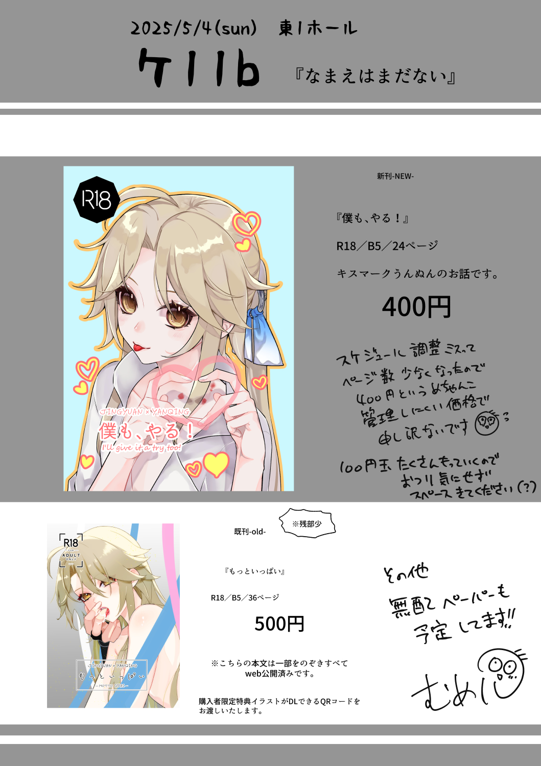 無配ペーパーも用意しておりますので、ふらっと遊びに来てもらえたらうれしいです!